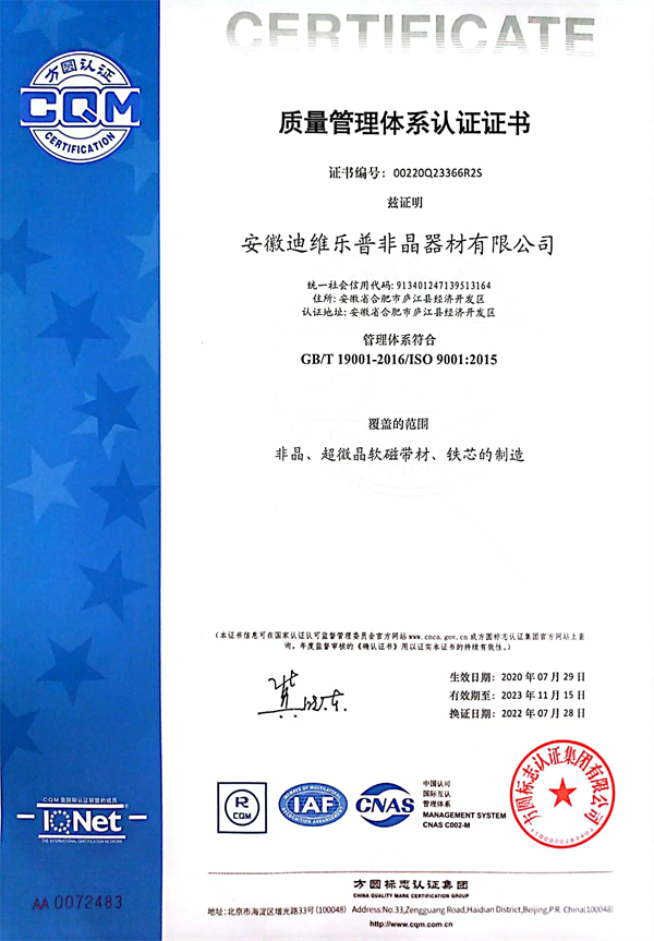 • 安徽迪維樂普非晶器材有限公司企業(yè)質(zhì)量標準